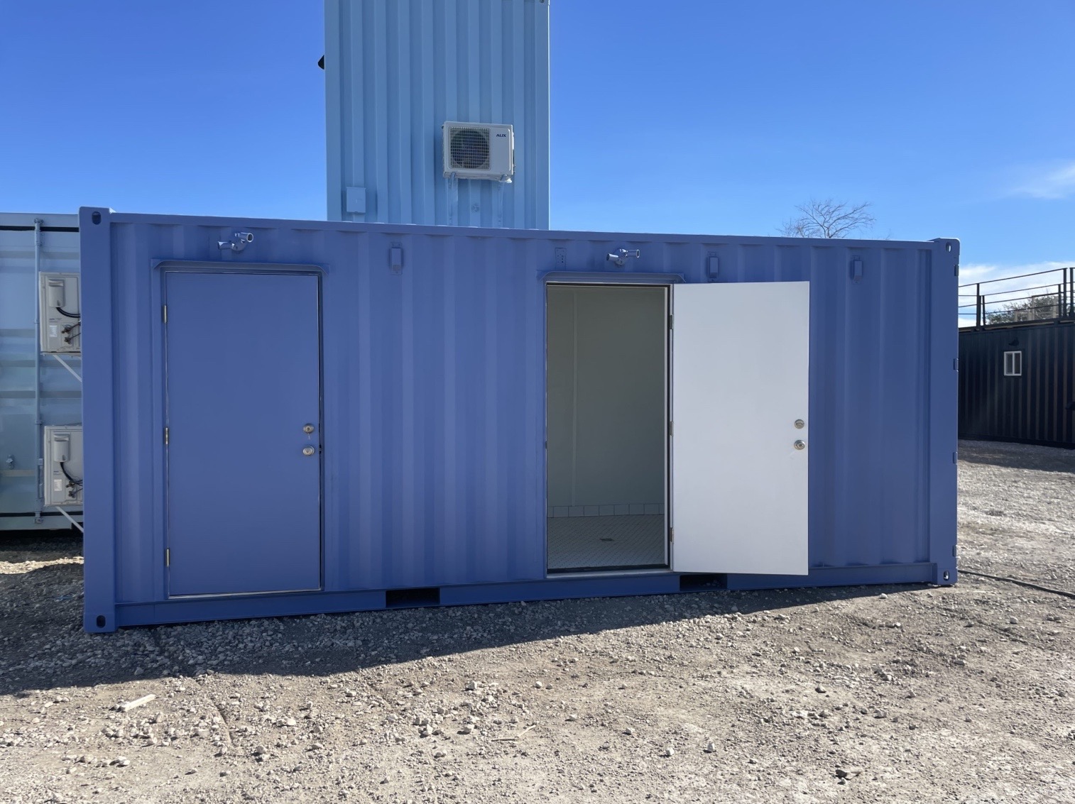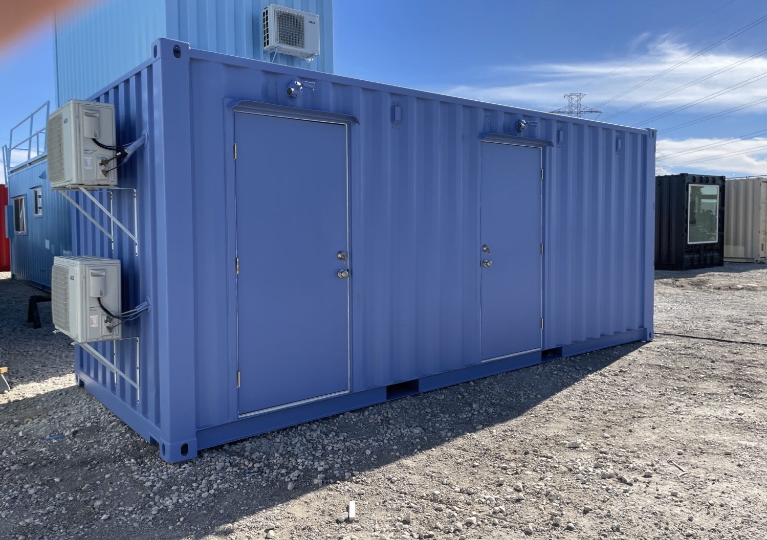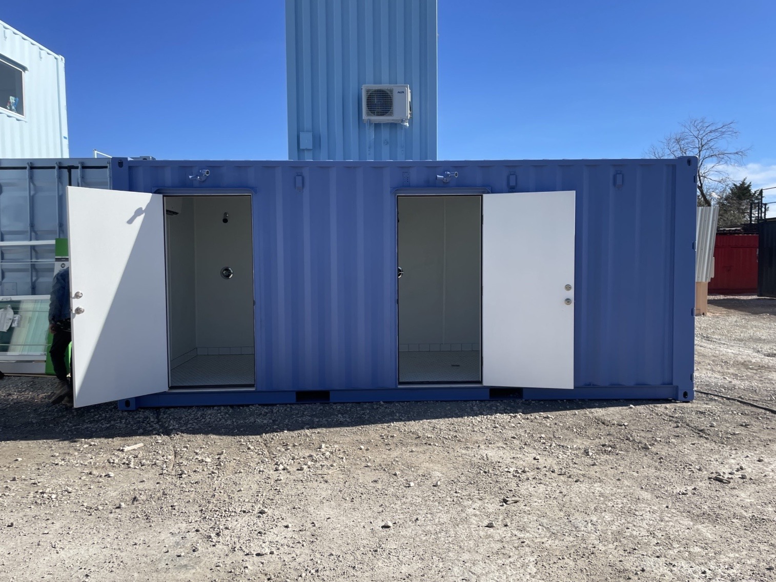 Nuestro Baño Contenedor de 20 Pies es la solución perfecta para eventos, campamentos, proyectos de construcción, ferias o reuniones sociales donde se requiere una instalación sanitaria cómoda, portátil y climatizada. Esta unidad cuenta con 2 cabinas privadas, cada una equipada con ducha, inodoro, lavabo y su propio sistema de aire acondicionado, asegurando privacidad y confort para los usuarios.