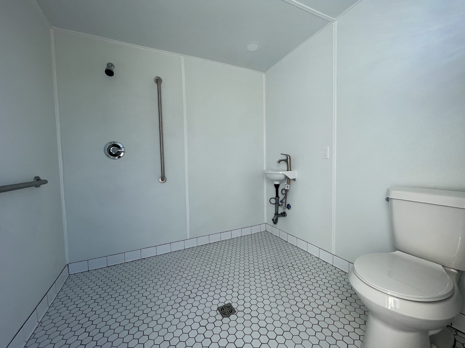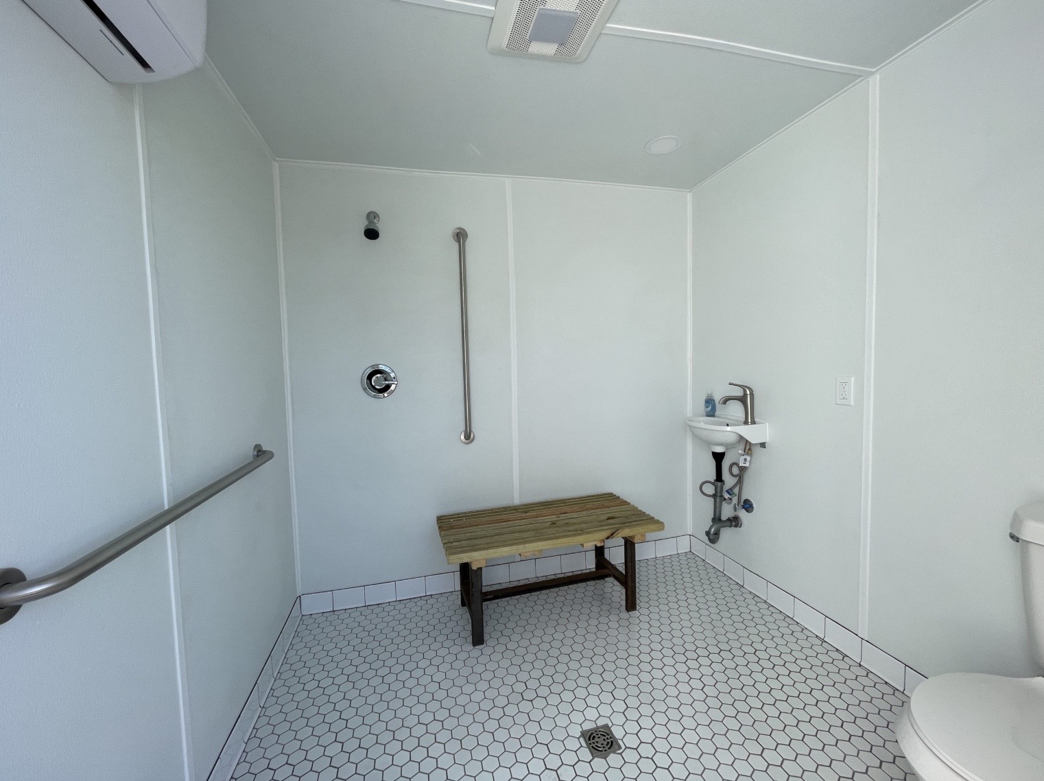 • Ducha con área cerrada y desagüe al piso