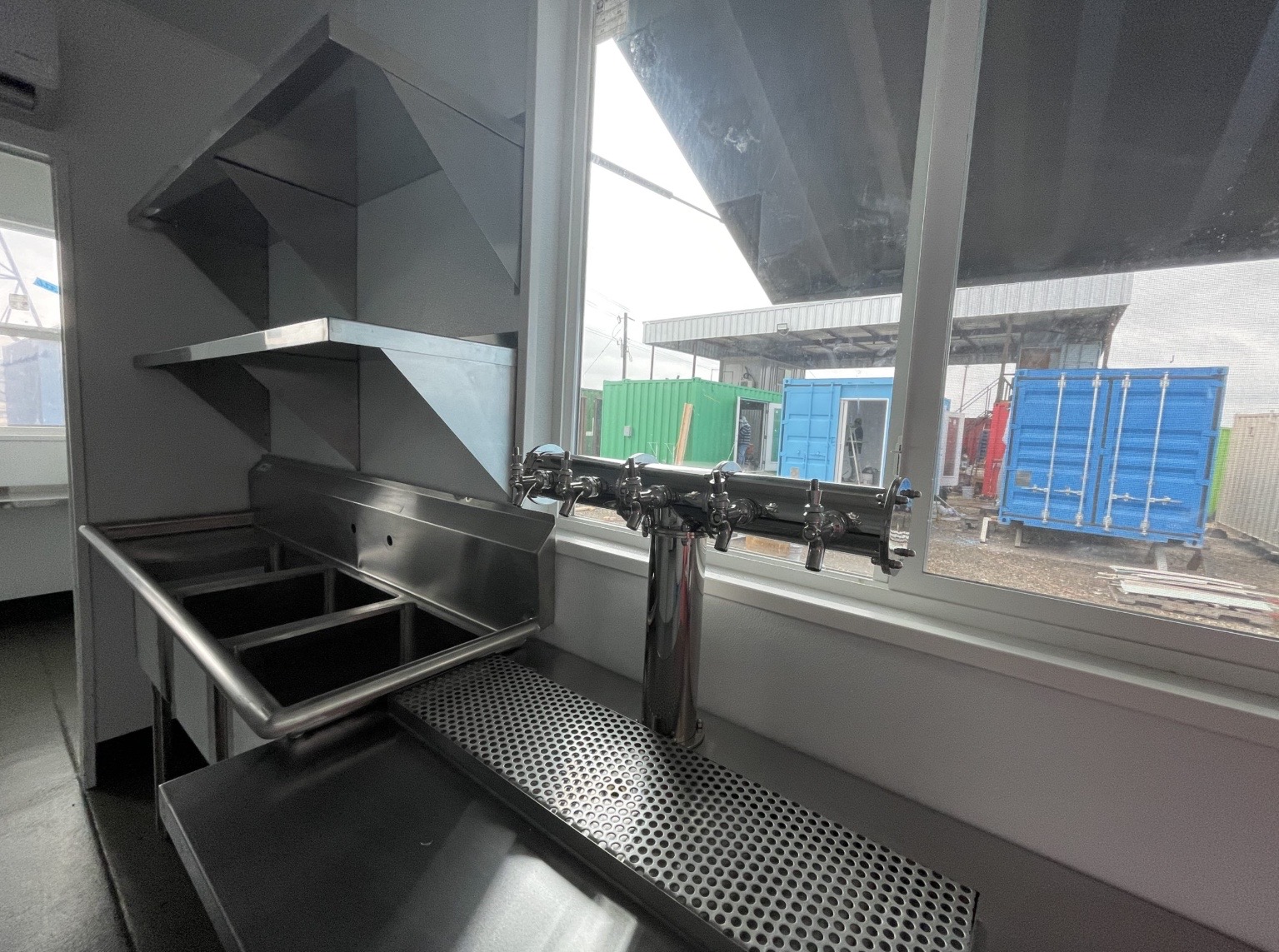 sala refrigerada para barriles, múltiples ventanas de servicio, y todo lo que necesitas para empezar a vender bebidas frías en minutos.