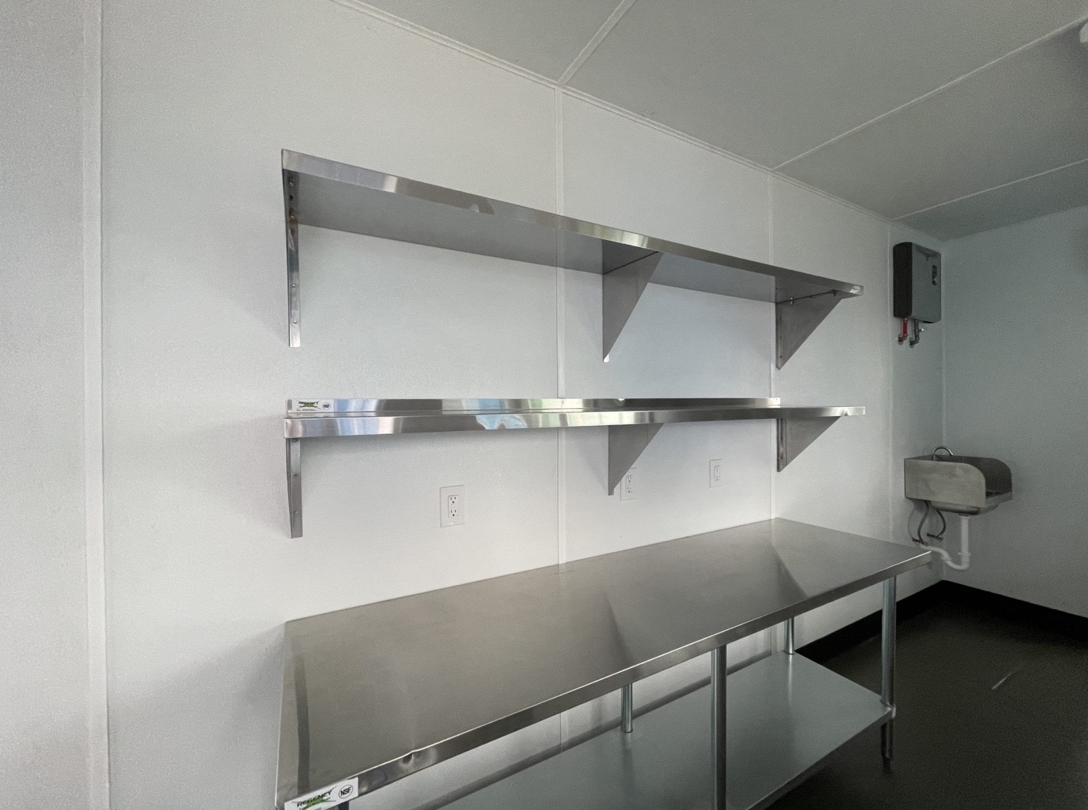 - Estanterías abiertas de 12 pies + estantería sobre fregadero