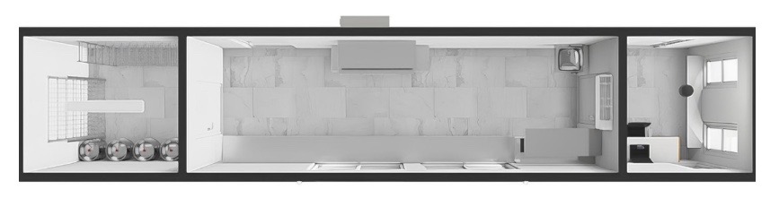 - Zona de Barra / Servicio: 23.55 ft (L) x 8 ft (W) x 9.5 ft (H)