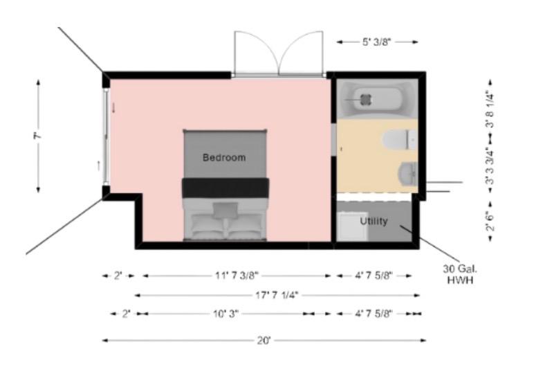 • Sala / Dormitorio: 14’7.5” x 10’ x 8’