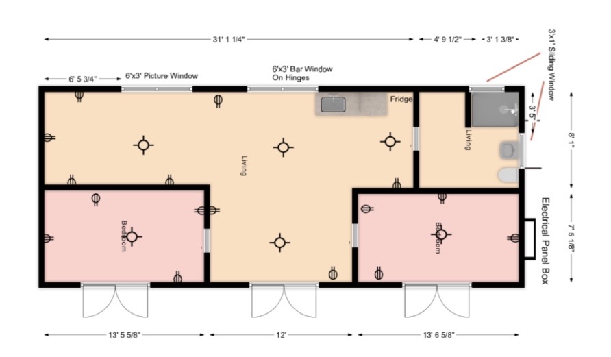 • Puertas interiores tipo pocket door: 3 unidades de 24" x 80"
