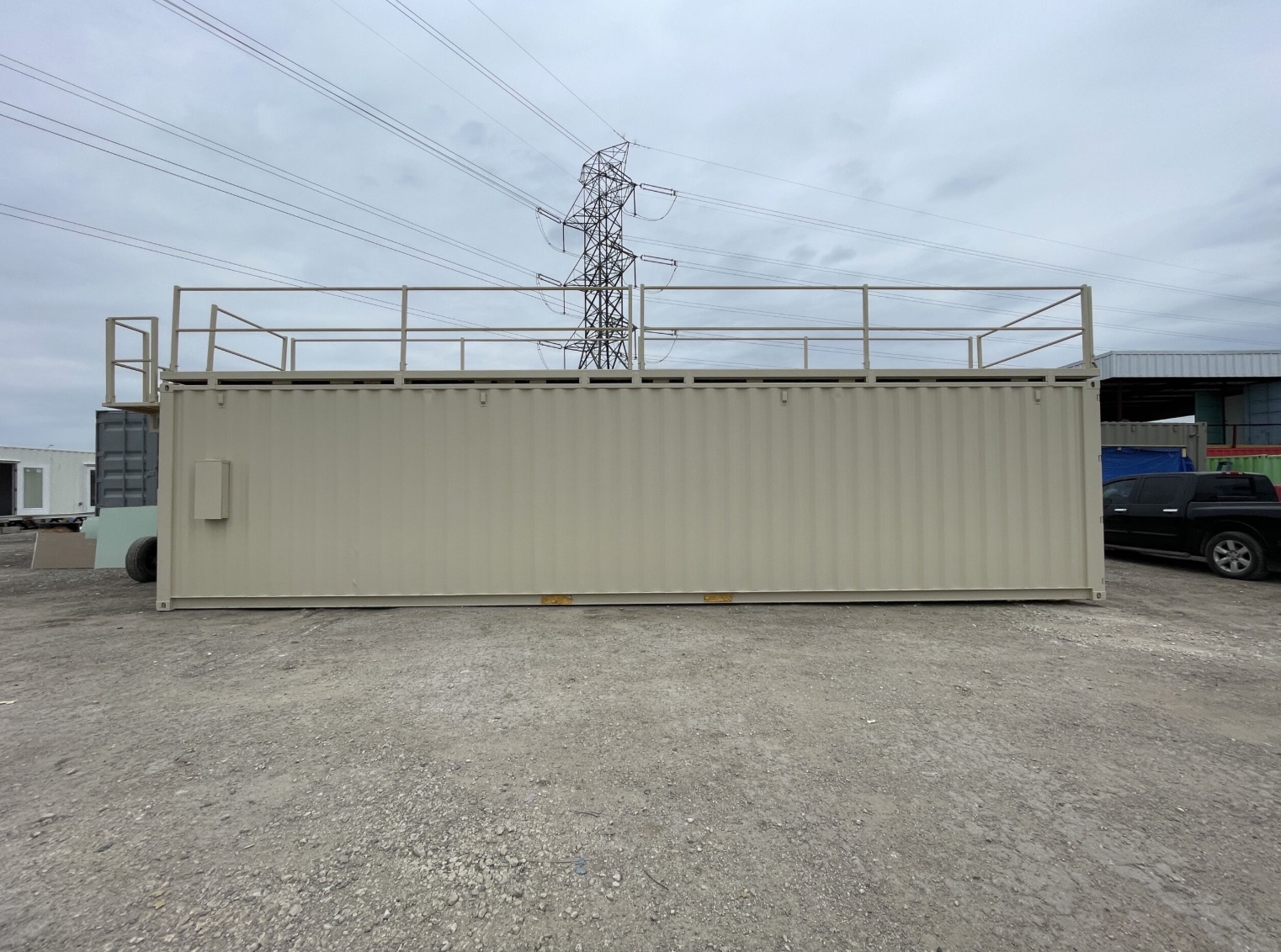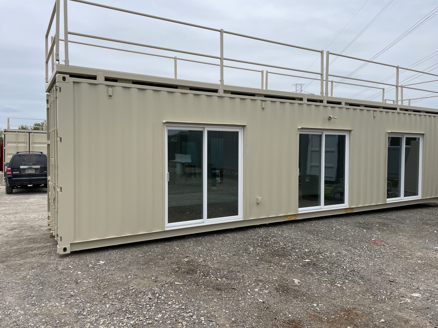 gimnasio contenedor de 40 pies con terraza en la azotea. Diseñado para quienes buscan entrenar con privacidad o emprender un negocio como entrenador personal desde casa. Esta unidad te ofrece